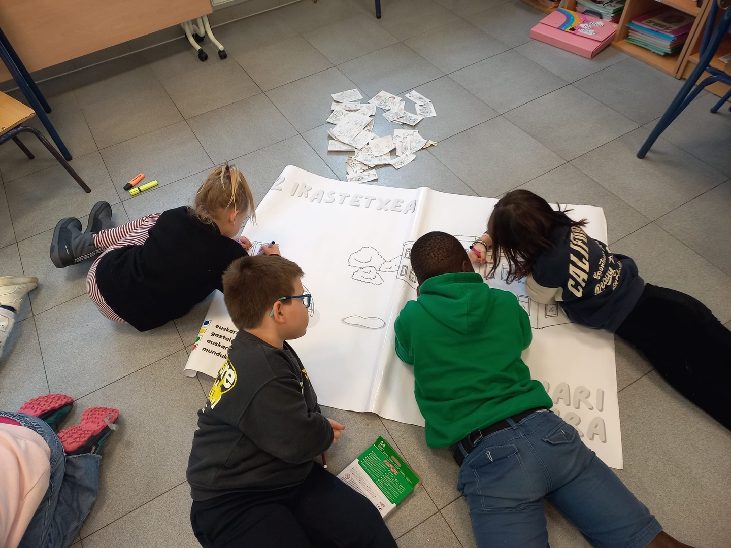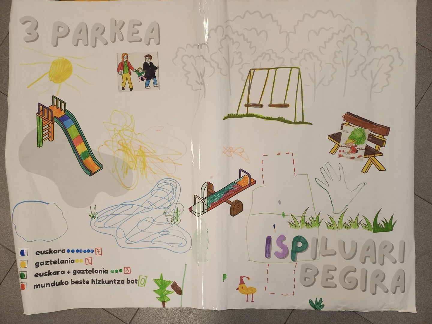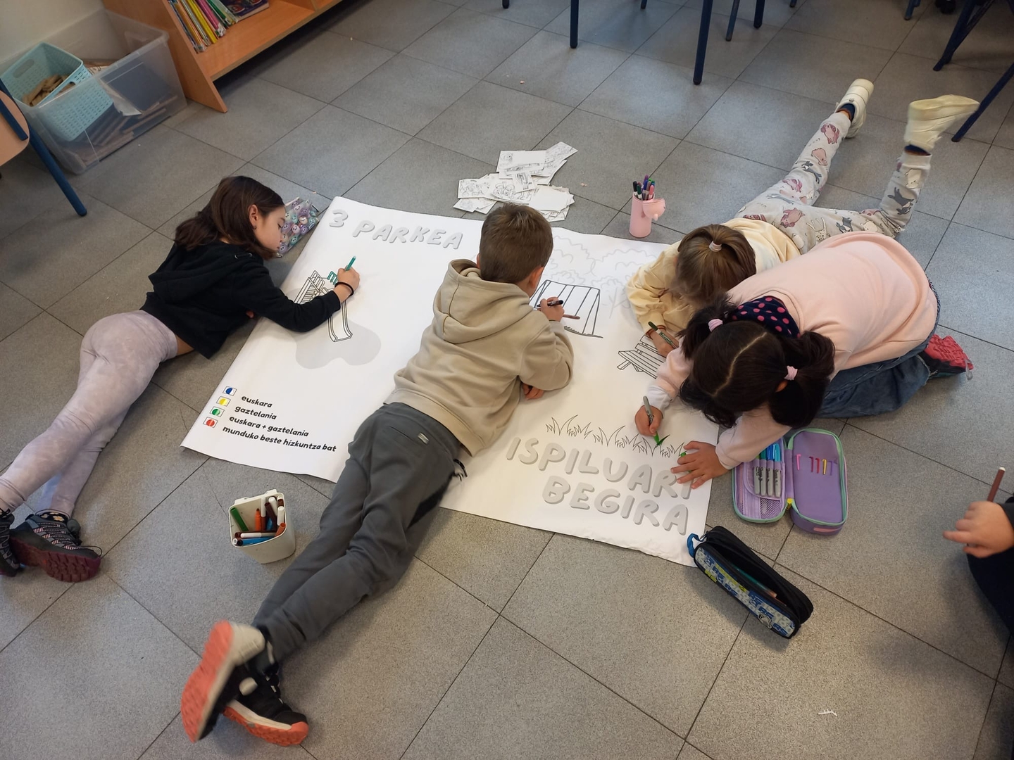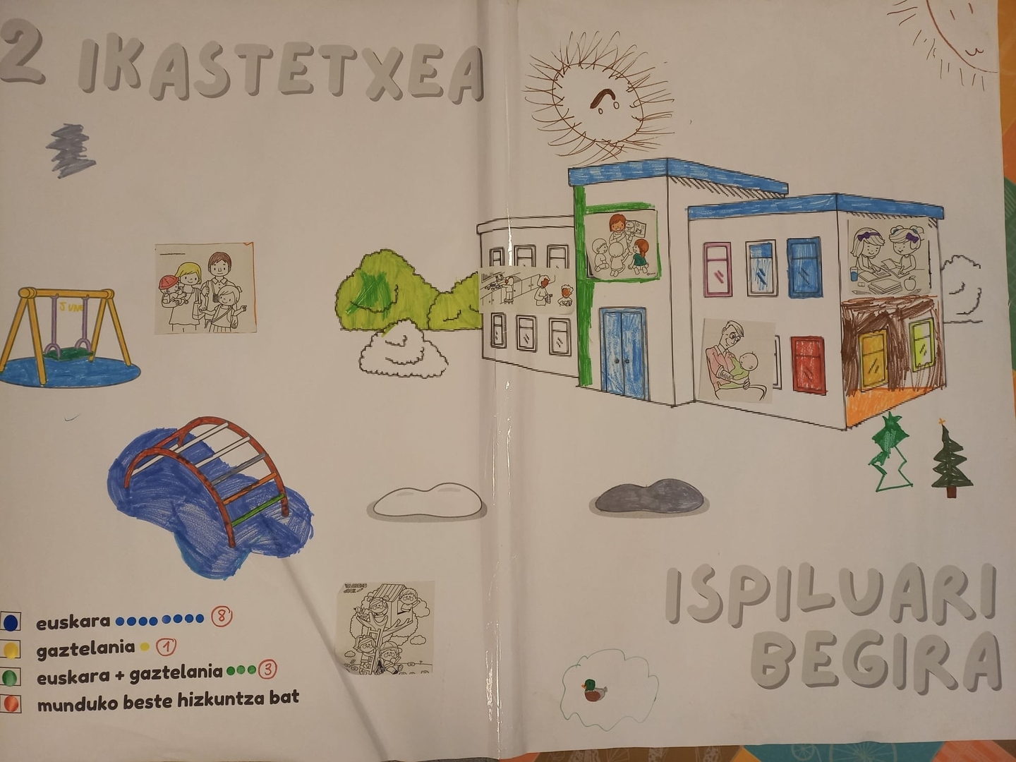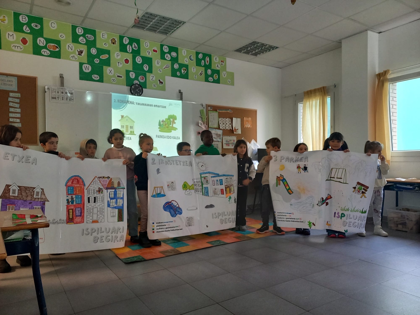 Gelako haurren eta familien hizkuntza ohiturak ezagutzeko dinamikak egin zituzten, eta ondoren taldeka egindako lana gurasoei aurkeztu zieten. Gurasoak gelara etorri ziren eta haurren kartelak ikusi eta konpromezuak entzun zituzten.